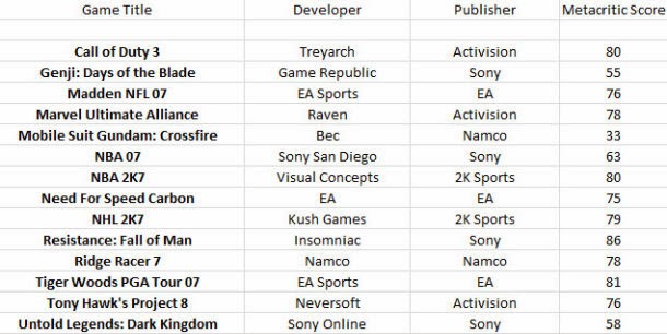 -- Resistance: Fall of Manand NBA 07 -- with near-launch games, like MotorStorm, not ready until the European launch.